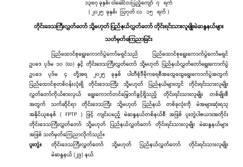 တိုင်းဒေသကြီးလွှတ်တော် သို့မဟုတ် ပြည်နယ်လွှတ်တော် တိုင်းရင်းသားလူမျိုးမဲဆန္ဒနယ်များ သတ်မှတ်ကြေညာခြင်း