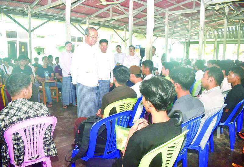 အလုပ်သမားဝန်ကြီးဌာန ဒုတိယဝန်ကြီး ဦးဝင်းရှိန်သည် ယနေ့တွင် ရန်ကုန်တိုင်းဒေသကြီး အလုပ်သမားရေးရာဌာနမှ တာဝန်ရှိသူများနှင့်အတူ ဒဂုံမြို့သစ် (မြောက်ပိုင်း) မြို့နယ်ရှိ ကျွမ်းကျင်မှုလေ့ကျင့်ရေးသင်တန်းကျောင်း၌ ကိုရီးယားဘာသာအရည်အချင်းစစ် (EPS) စာမေးပွဲအောင်မြင်သူများအား အလုပ်လျှောက်လွှာထုတ်ပေးနေမှုကို ကြည့်ရှုစစ်ဆေးသည်။