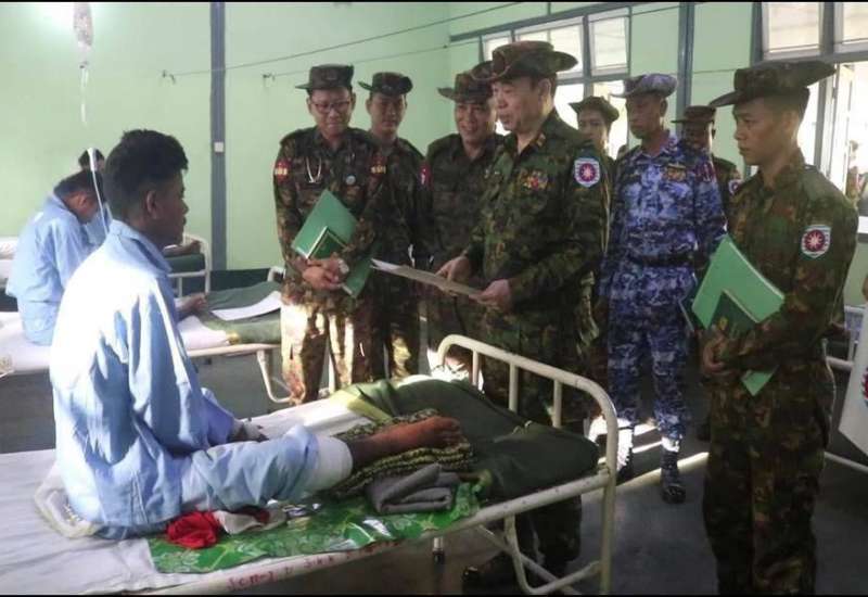 ရခိုင်ပြည်နယ်၊ ကျောက်ဖြူမြို့နယ်ရှိ နယ်မြေခံတပ်မတော်ဆေးရုံတွင် တက်ရောက်ဆေးကုသမှုခံယူလျက်ရှိသော အရာရှိ၊ စစ်သည်၊ မိသားစုဝင်များနှင့် မြန်မာနိုင်ငံရဲတပ်ဖွဲ့ဝင်များအား ယနေ့နံနက်ပိုင်းတွင် အနောက်ပိုင်းတိုင်းစစ်ဌာနချုပ် တိုင်းမှူး ဗိုလ်ချုပ်ကျော်စွာဦးနှင့် အဖွဲ့ဝင်များက သွားရောက်ကြည့်ရှု၍ တစ်ဦးချင်း၏ ရောဂါဖြစ်ပွားမှု၊ ဆေးဝါးကုသပေးထားမှုများနှင့် ကျန်းမာရေးတိုးတက်ကောင်းမွန်မှု အခြေအနေများအား ရင်းရင်းနှီးနှီး မေးမြန်းအားပေးစကားပြောကြားပြီး ဂုဏ်ပြုချီးမြှင့်ငွေများနှင့် စားသောက်ဖွယ်ရာများ ပေးအပ်သည်။
