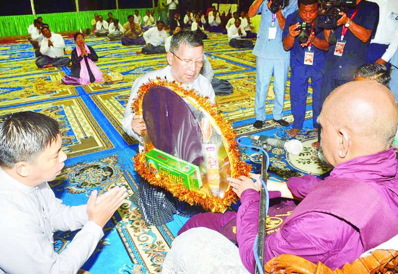 (၇၈) နှစ်မြောက်အာဇာနည်နေ့ ဆွမ်းဆက်ကပ်လှူဒါန်းခြင်းအခမ်းအနားကို နေပြည်တော်ကောင်စီဇမ္ဗူသီရိခန်းမ၌ကျင်းပရာ နေပြည်တော်ကောင်စီဥက္ကဋ္ဌ ဦးသန်းထွန်းဦး၊ ဒုတိယဝန်ကြီးများ၊ နေပြည်တော်ကောင်စီဝင်များ၊ နေပြည်တော်စည်ပင်သာယာရေးကော်မတီ ဒုတိယမြို့တော်ဝန်နှင့် ကော်မတီဝင်များ၊ ဌာနဆိုင်ရာတာဝန်ရှိသူများ တက်ရောက်ကြသည်။