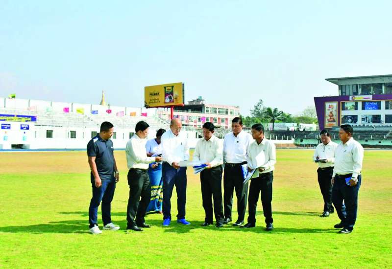 မြန်မာနိုင်ငံအိုလံပစ်ကော်မတီဥက္ကဋ္ဌ အားကစားနှင့်လူငယ်ရေးရာဝန်ကြီးဌာနနှင့် ဟိုတယ်နှင့်ခရီးသွားလာရေးဝန်ကြီးဌာန ပြည်ထောင်စုဝန်ကြီး Jeng Phang နော်တောင်သည် မွန်ပြည်နယ် လူမှုရေးရာဝန်ကြီး၊ တာဝန်ရှိသူများနှင့်အတူ ယမန်နေ့မွန်းလွဲပိုင်းက မွန်ပြည်နယ် ရာမညအားကစားကွင်းကို ကြည့်ရှုသည်။