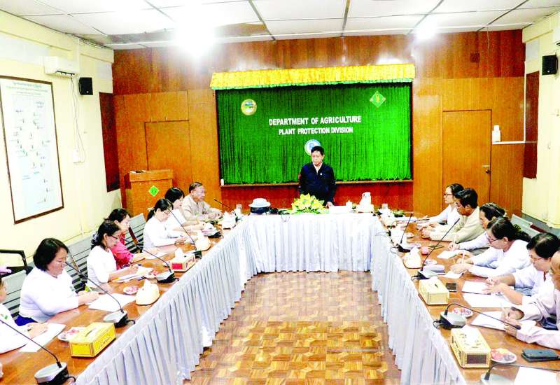 စိုက်ပျိုးရေး၊ မွေးမြူရေးနှင့်ဆည်မြောင်းဝန်ကြီးဌာန ဒုတိယဝန်ကြီး ဒေါက်တာတင်ထွဋ်သည် ယမန်နေ့ ညနေပိုင်းတွင် ရန်ကုန်တိုင်းဒေသကြီး အင်းစိန်မြို့နယ်ရှိ စိုက်ပျိုးရေးဦးစီးဌာန သီးနှံကာကွယ်ရေးဌာနခွဲ၌ သီးနှံကာကွယ်ရေးပညာရှင်များနှင့်တွေ့ဆုံ၍ စိုက်ပျိုးရေးသွင်းအားစုဆိုင်ရာ တောင်သူပညာပေး လုပ်ငန်းများတိုးချဲ့လုပ်ကိုင်နိုင်ရေး ဆွေးနွေးမှာကြားသည်။