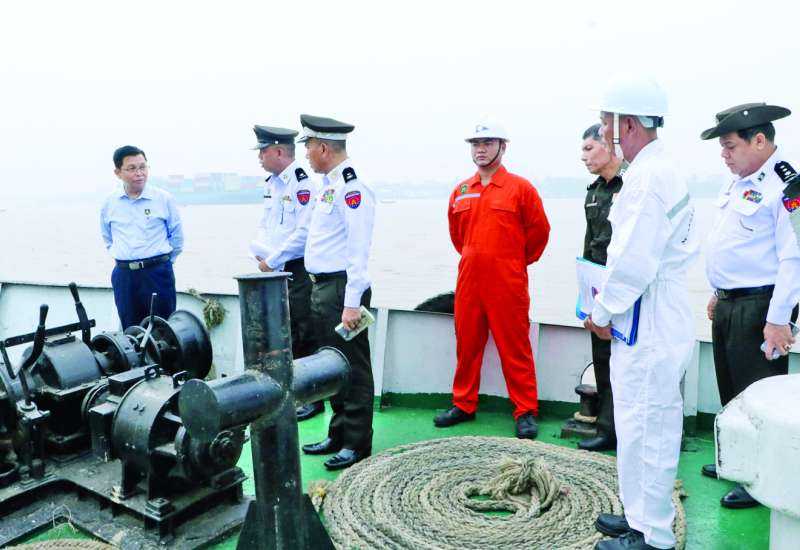 လူဝင်မှုကြီးကြပ်ရေးနှင့်ပြည်သူ့အင်အားဝန်ကြီးဌာန ပြည်ထောင်စုဝန်ကြီး ဦးမြင့်ကြိုင်သည် တာဝန်ရှိသူများနှင့်အတူ ယနေ့နံနက်ပိုင်းက ရန်ကုန်တိုင်းဒေသကြီး ကျောက်တံတားမြို့နယ် Yangon Innovation Centre (YIC) ရှေ့ရှိ ကျန်းမာရေးဆိပ်ခံတံတား၌ ဆိုက်ကပ်ထားသော ရေကြောင်းဆိုင်ရာ လူဝင်မှုကြီးကြပ်ရေးလုပ်ငန်းများ ဆောင်ရွက်သည့် ဌာနပိုင်ဇင်ယော်ရေယာဉ်များကို သွားရောက်ကြည့်ရှု စစ်ဆေးသည်။