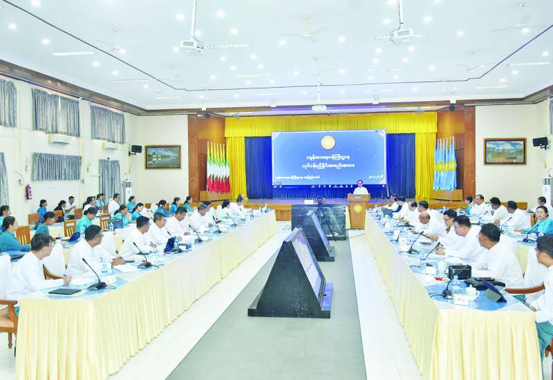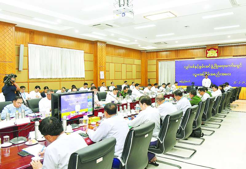 လျှပ်စစ်နှင့်စွမ်းအင်ဖွံ့ဖြိုးရေးကော်မရှင်၏ ပဉ္စမအကြိမ် လုပ်ငန်းညှိနှိုင်းအစည်းအဝေးကို ယနေ့မွန်းလွဲပိုင်းတွင် နေပြည်တော်ရှိ အမျိုးသားကာကွယ်ရေးနှင့်လုံခြုံရေးကောင်စီရုံးအစည်းအဝေးခန်းမ၌ ကျင်းပပြုလုပ်ရာ လျှပ်စစ်နှင့်စွမ်းအင်ဖွံ့ဖြိုးရေးကော်မရှင်ဥက္ကဋ္ဌ နိုင်ငံတော်သမ္မတရုံးဝန်ကြီးဌာန(၁) ပြည်ထောင်စုဝန်ကြီး ဦးတင်အောင်စန်း၊ ကော်မရှင်ဒုတိယဥက္ကဋ္ဌများနှင့် ကော်မရှင်အဖွဲ့ဝင် ပြည်ထောင်စုဝန်ကြီးများ၊ နေပြည်တော်ကောင်စီဥက္ကဋ္ဌနှင့် တာဝန်ရှိသူများ တက်ရောက်ကြပြီး တိုင်းဒေသကြီးနှင့် ပြည်နယ်ဝန်ကြီးချုပ်များက အွန်လိုင်းစနစ်ဖြင့် တက်ရောက်ကြသည်။