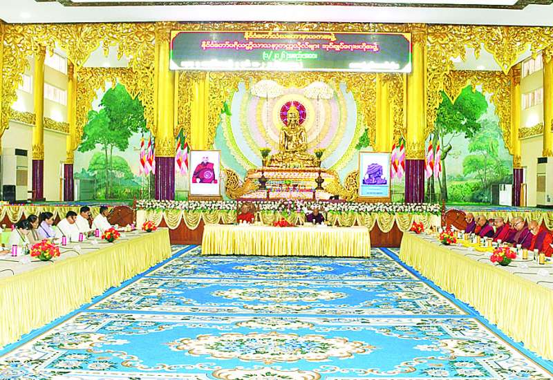 နဝမအကြိမ် နိုင်ငံတော်ဗဟိုသံဃာ့ ဝန်ဆောင်အဖွဲ့ ဒုတိယအစည်းအဝေးပထမနေ့ကို ယနေ့နံနက် ၈ နာရီတွင် ရန်ကုန်တိုင်းဒေသကြီး မရမ်းကုန်းမြို့နယ် သီရိမင်္ဂလာကမ္ဘာအေးကုန်းမြေ ဆဋ္ဌသင်္ဂါယနာမဟာပါသာဏ လိုဏ်ဂူတော်ကြီး၌ ကျင်းပသည်။