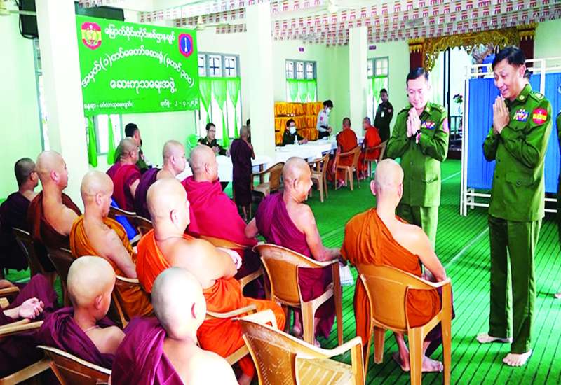 တပ်မတော်အနေဖြင့် ပြည်သူလူထု၏ ကျန်းမာရေးကဏ္ဍ တိုးတက်မြင့်မားစေရန်အတွက် ကျန်းမာရေးစောင့်ရှောက်မှုလုပ်ငန်းများတွင် တစ်ဖက်တစ်လမ်းမှ ကူညီစောင့်ရှောက်ပေးမှုများ ဆောင်ရွက်ပေးလျက်ရှိရာ ယနေ့နံနက်ပိုင်းတွင် မြောက်ပိုင်းတိုင်းစစ်ဌာနချုပ် နယ်လှည့်ဆေးကုသရေးအဖွဲ့က ကချင်ပြည်နယ် မြစ်ကြီးနားမြို့ပေါ်ရှိ သံဃာတော်များအား မင်္ဂလာသုခကျောင်းတိုက်၌ အခြေပြု၍ ကျန်းမာရေးစောင့်ရှောက်မှုလုပ်ငန်းများ ဆောင်ရွက်ပေးသည်။