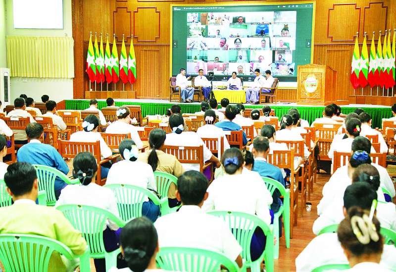 အပူဒဏ်အန္တရာယ်နှင့်ပတ်သက်သော ကျန်းမာရေးပြဿနာများ ကာကွယ်ကုသရေးညှိနှိုင်းအစည်းအဝေးကို ယနေ့မွန်းလွဲပိုင်းတွင် Semi Virtual စနစ်ဖြင့်ကျင်းပရာ ကျန်းမာရေးဝန်ကြီးဌာန ဒုတိယဝန်ကြီး ဒေါက်တာအေးထွန်း၊ မကွေးတိုင်းဒေသကြီး၊ ပဲခူးတိုင်းဒေသကြီး၊ မန္တလေးတိုင်းဒေသကြီး၊ ရန်ကုန်တိုင်းဒေသကြီးနှင့် နေပြည်တော်တို့မှ ပြည်သူ့ကျန်းမာရေးနှင့် ကုသရေးဦးစီးဌာနမှူးများ၊ ပြည်သူ့ကျန်းမာရေးဦးစီးဌာနနှင့် ကုသရေးဦးစီးဌာနများမှ တာဝန်ရှိသူများနှင့် ဗဟိုအဆင့်ဆေးရုံကြီးများမှ ဆေးရုံအုပ်ကြီးများ တက်ရောက်ကြသည်။