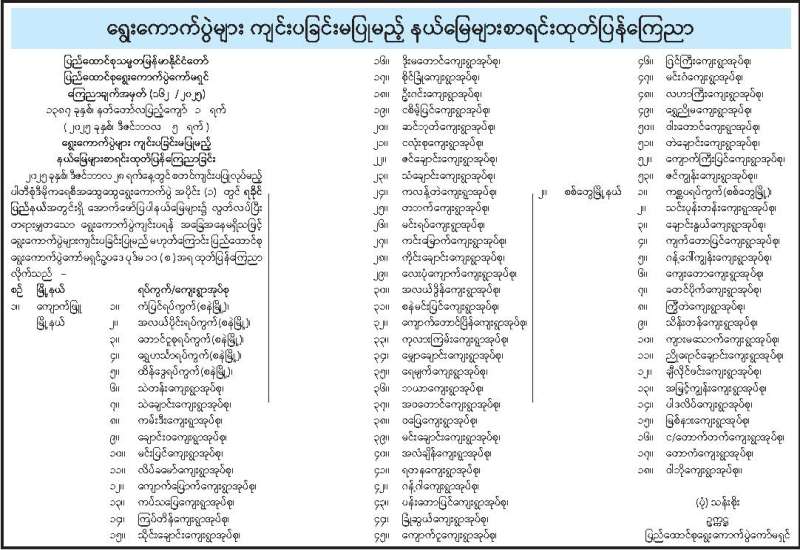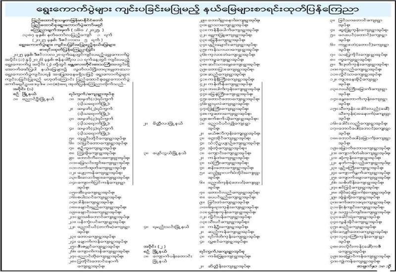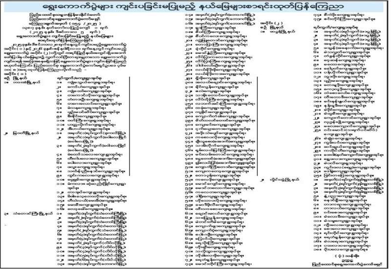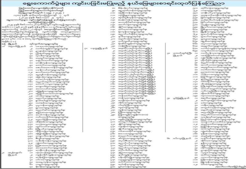 ရွေးကောက်ပွဲများ ကျင်းပခြင်းမပြုမည့် နယ်မြေများစာရင်းထုတ်ပြန်ကြေညာ
