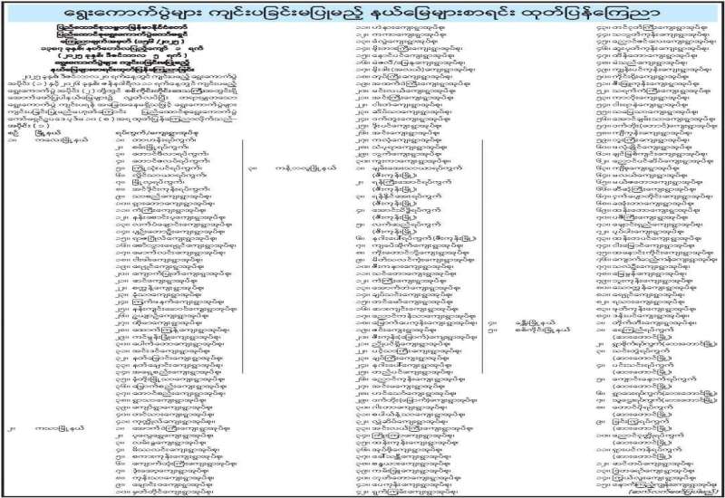 ရွေးကောက်ပွဲများ ကျင်းပခြင်းမပြုမည့် နယ်မြေများ စာရင်းထုတ်ပြန်ကြေညာ