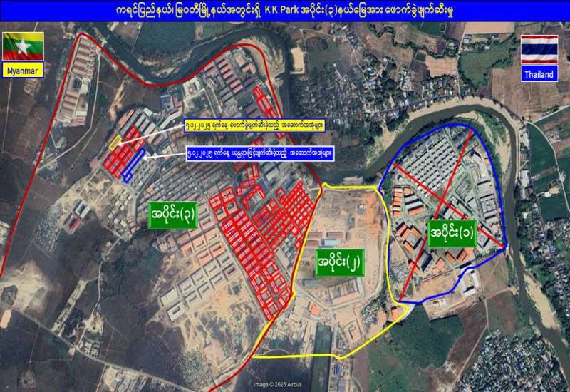 မြန်မာနိုင်ငံတော်အစိုးရအနေဖြင့် အွန်လိုင်းလိမ်လည်မှုများနှင့် အွန်လိုင်းလောင်းကစားမှုများ အများဆုံးအခြေချလုပ်ကိုင်လျက်ရှိကြသည့် ရွှေကုက္ကိုလ်နယ်မြေနှင့် မြဝတီ-မဲထော်သလေး (KK Park) နယ်မြေများ၌ လုံခြုံရေးတပ်ဖွဲ့ဝင်များ၊ အုပ်ချုပ်ရေးအဖွဲ့အစည်းများနှင့် ဒေသတွင်း တာဝန်ရှိသူများအပါအဝင် အဖွဲ့စုံပါဝင်သည့် ပူးပေါင်းအဖွဲ့ဖြင့် တရားမဝင်အဆောက်အအုံများအတွင်း ဝင်ရောက်ရှင်းလင်းခြင်း၊ အွန်လိုင်းလိမ်လည် လောင်းကစားမှုလုပ်ငန်းစဉ်များတွင် အသုံးပြုခဲ့သည့် သိမ်းဆည်းရမိပစ္စည်းများနှင့် တရားမဝင်အဆောက်အအုံများအား စနစ်တကျဖြိုချဖျက်ဆီးခြင်းနှင့် ချိပ်ပိတ်သိမ်းဆည်းခြင်းများ ဆောင်ရွက်လျက်ရှိရာ ယနေ့အထိ KK Park နယ်မြေအတွင်းရှိ တရားမဝင်အဆောက်အအုံ ၃၀၈ လုံးကို စနစ်တကျဖြိုချဖျက်ဆီးခဲ့ပြီးဖြစ်ကြောင်း သိရှိရသည်။