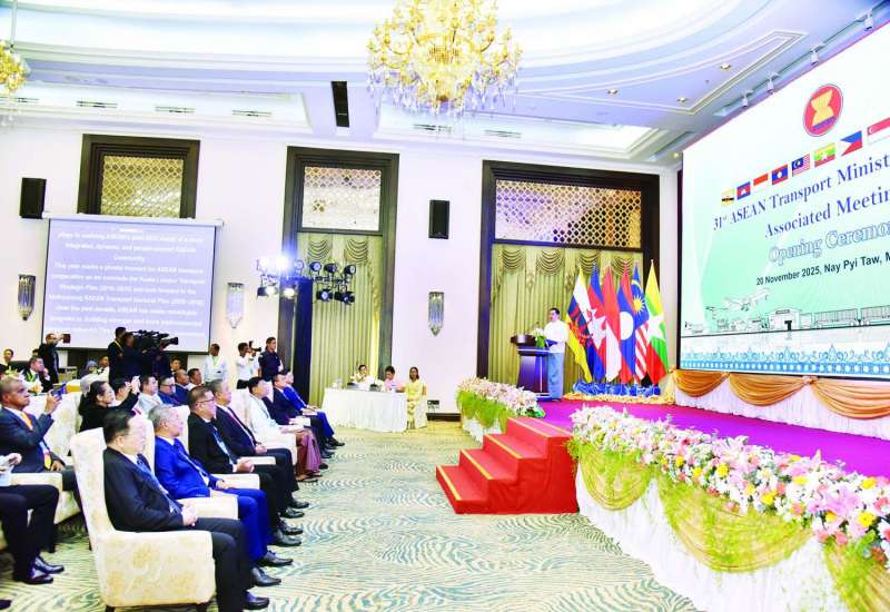 (၃၁)ကြိမ်မြောက် အာဆီယံပို့ဆောင်ရေးဝန်ကြီးများ အစည်းအဝေးနှင့် ဆက်စပ်အစည်းအဝေးများ ဖွင့်ပွဲအခမ်းအနားကို ယနေ့နံနက်ပိုင်းတွင် နေပြည်တော်ရှိ Jasmine Naypyitaw Hotel ၌ ကျင်းပပြုလုပ်ရာ နိုင်ငံတော်ဝန်ကြီးချုပ် ဦးညိုစော တက်ရောက်အမှာစကားပြောကြားသည်။