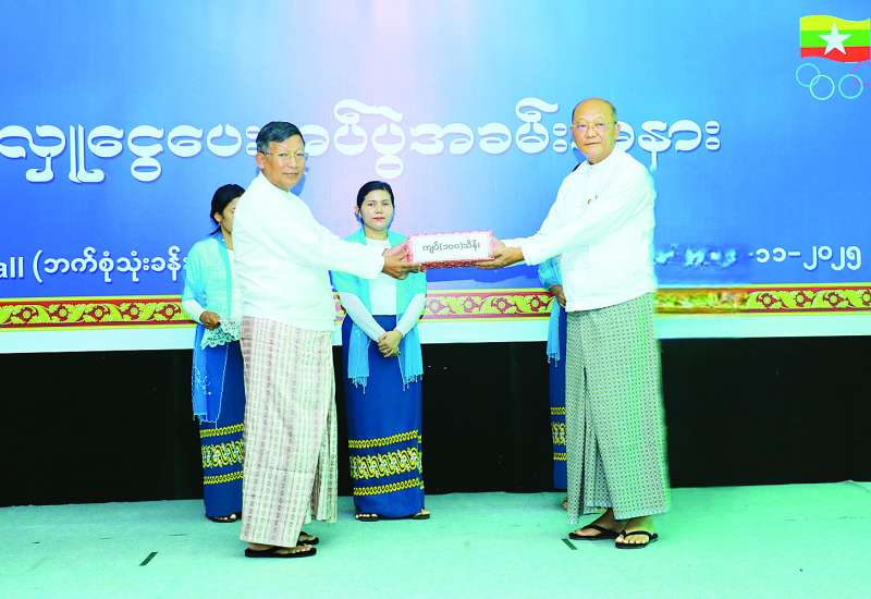(၃၃)ကြိမ်မြောက် အရှေ့တောင်အာရှအားကစားပြိုင်ပွဲတွင် မြန်မာနိုင်ငံကိုယ်စားပြု ပါဝင်ယှဉ်ပြိုင်ကြမည့် အားကစားအဖွဲ့များ၏ အားကစားအောင်နိုင်ရေးအတွက် သာသနာရေးနှင့်ယဉ်ကျေးမှုဝန်ကြီးဌာနက အလှူငွေကျပ်သိန်း ၁၀၀ ပေးအပ်လှူဒါန်းပွဲအခမ်းအနားကို ယနေ့မွန်းလွဲပိုင်းတွင် နေပြည်တော် အားကစားလေ့ကျင့်ရေးစခန်း(Gold Camp)ရှိ ဘက်စုံသုံးခန်းမ၌ ကျင်းပသည်။