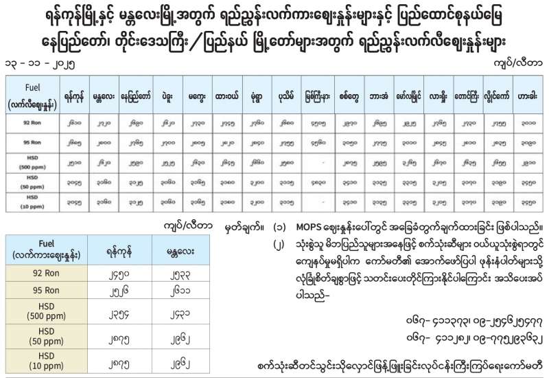 အမျိုးသားအဆင့် လျှပ်စစ်သုံးယာဉ်နှင့်ဆက်စပ်လုပ်ငန်းများဖွံ့ဖြိုးတိုးတက်ရေး ဦးဆောင် ကော်မတီ၏ ခွင့်ပြုချက်ဖြင့် The Great Merger Co., Ltd. မှ တင်သွင်းလာသော တရုတ်နိုင်ငံထုတ် AVATR 12A (ULTRA) အမျိုးအစား လျှပ်စစ်သုံးမော်တော်ယာဉ်များ၊ UV Automotive Co., Ltd. မှ တင်သွင်းလာသော တရုတ်နိုင်ငံထုတ် HONGQI EHS7 အမျိုး အစား လျှပ်စစ်သုံးမော်တော်ယာဉ် များနှင့် N.P.K Motors Co., Ltd. မှ တင်သွင်းလာသော တရုတ်နိုင်ငံထုတ် Leapmotor B10 အမျိုး အစား လျှပ်စစ်သုံးမော်တော်ယာဉ်များသည် ရန်ကုန်ဆိပ်ကမ်းသို့ ရောက်ရှိလာပါသဖြင့် နိုဝင်ဘာ ၁၂ ရက်တွင် လုပ်ထုံးလုပ်နည်းနှင့်အညီ ထုတ်ယူခွင့်ပြုခဲ့ပါကြောင်း သတင်းရရှိသည်။