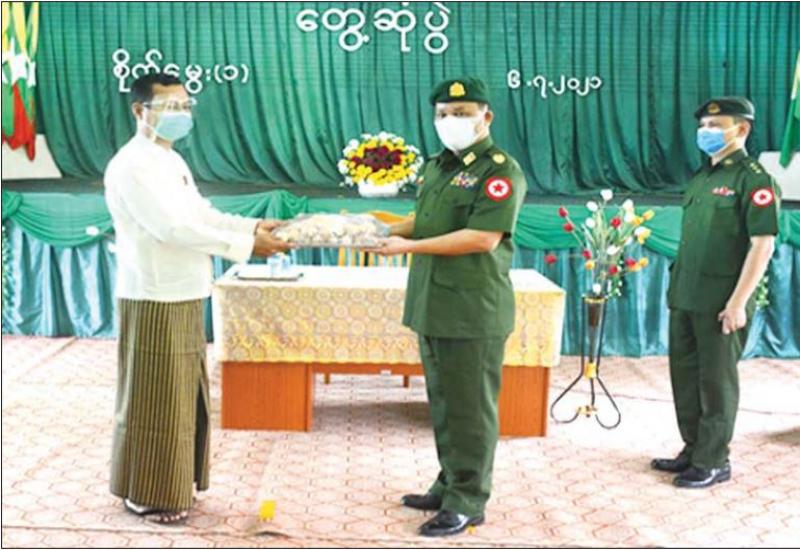 ရန်ကုန်တိုင်းဒေသကြီး ဒဂုံမြို့သစ်(တောင်ပိုင်း) မြို့နယ် အမှတ်(၁) စိုက်ပျိုးမွေးမြူရေးရပ်ကွက် အခြေခံပညာ အထက်တန်းကျောင်းရှိ ဆရာ၊ ဆရာမ များကို ကျောင်းဝတ်စုံများ၊ စားသောက် ကုန်ပစ္စည်းများ ထောက်ပံ့ခြင်းနှင့် မြန်မာ့သားကောင်း အဆင့်မြင့် စစ်မှုထမ်းဟောင်းအိမ်ရာ (လေးထောင့်ကန်)ရှိ စစ်မှုထမ်းဟောင်း အဖွဲ့ဝင်များနှင့် မိသားစုဝင်များကို စားသောက်ကုန် ပစ္စည်းများ ထောက်ပံ့ပေးအပ်ခြင်းကို ယနေ့ နံနက်ပိုင်းတွင် အဆိုပါ ရပ်ကွက်ရှိ အခြေခံပညာ အထက်တန်းကျောင်းခန်းမ၌ ပြုလုပ်သည်။