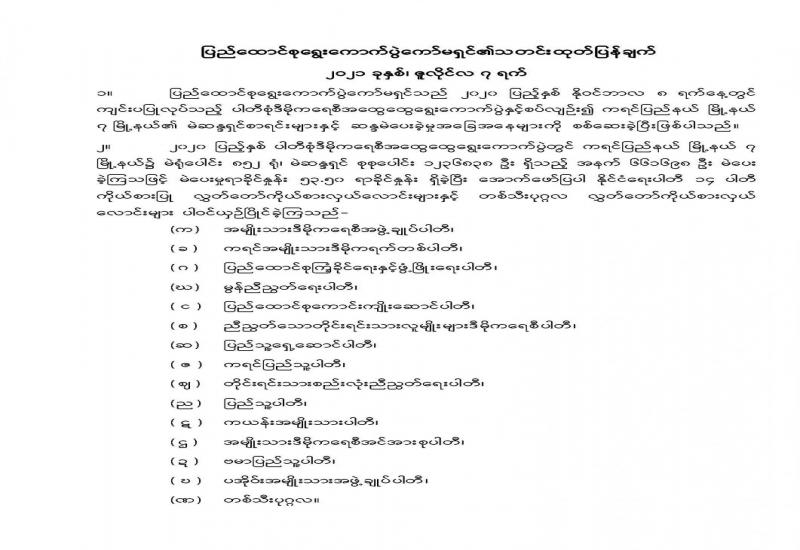 ပြည်ထောင်စုရွေးကောက်ပွဲကော်မရှင်၏သတင်းထုတ်ပြန်ချက် ၂၀၂၁ ခုနှစ်၊ ဇူလိုင်လ ၇ ရက်