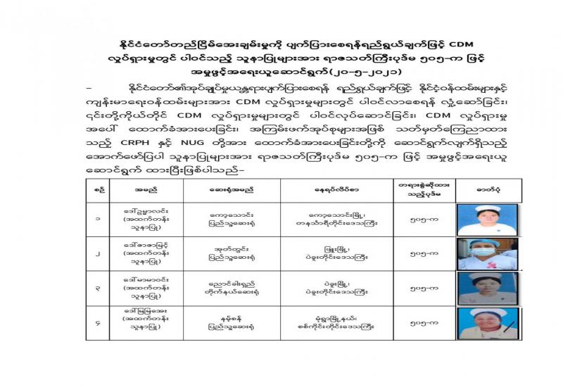 နေပြည်တော်ကောင်စီနယ်မြေအတွင်းရှိ စေတနာ့ဝန်ထမ်း အဖွဲ့အစည်းများ၊ မသန်စွမ်းသူ များနှင့် အသက်(၈၅)နှစ်အထက် သက်ကြီးရွယ်အိုများအတွက် ထောက်ပံ့ခြင်းအခမ်းအနားကို ယနေ့နံနက်ပိုင်းတွင် မင်္ဂလာဗျူဟာသာသနာ့ဗိမာန်ခန်းမ၌ ကျင်းပသည်။ အခမ်းအနားသို့ လူမှုဝန်ထမ်းကယ်ဆယ်ရေးနှင့် ပြန်လည်နေရာချထားရေး ဝန်ကြီး ဌာန၊ ပြည်ထောင်စုဝန်ကြီး ဒေါက်တာသက်သက်ခိုင်၊ နေပြည်တော်ကောင်စီဥက္ကဋ္ဌ၊ ဒေါက်တာ မောင်မောင်နိုင်၊