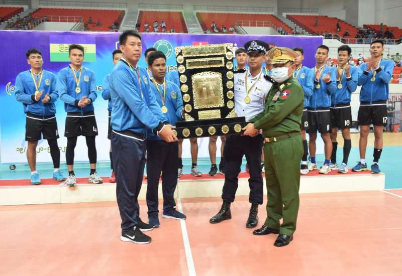 (၁၈)ကြိမ်မြောက် ပြည်ထဲရေးဝန်ကြီးဌာန၊ ပြည်ထောင်စုဝန်ကြီး တံခွန်စိုက်ဒိုင်း(အမျိုးသား/ အမျိုးသမီး)ဘော်လီဘောပြိုင်ပွဲ ဗိုလ်လုပွဲနှင့် ဆုချီးမြှင့်ပွဲအခမ်းအနားကို ယနေ့ မွန်းလွဲ (၃)နာရီတွင် နေပြည်တော် ဝဏ္ဏသိဒ္ဓိအားကစားကွင်း(B)ရုံတွင် ကျင်းပရာ နိုင်ငံတော်စီမံအုပ်ချုပ်ရေးကောင်စီ အဖွဲ့ဝင်၊ ပြည်ထဲရေးဝန်ကြီးဌာန၊ ပြည်ထောင်စုဝန်ကြီး ဒုတိယဗိုလ်ချုပ်ကြီး စိုးထွဋ်နှင့် ဇနီး၊ ဒုတိယ ဝန်ကြီးများနှင့် ဇနီးများ၊ ပြည်ထဲရေးဝန်ကြီးဌာနမှ အရာရှိကြီးများနှင့် ဇနီးများ၊ တပ်ဖွဲ့/ဦးစီးဌာနများမှ တပ်ဖွဲ့ဝင်များနှင့် ဝန်ထမ်းမိသားစုဝင်များတက်ရောက်ကြည့်ရှုအားပေးခဲ့ကြသည်။