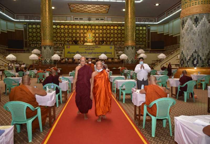 နိုင်ငံတော်သံဃမဟာနာယကအဖွဲ့ ဥက္ကဋ္ဌ အဘိဓဇမဟာရဋ္ဌဂုရု၊ အဘိဓဇ အဂ္ဂ မဟာသဒ္ဓမ္မဇောတိက ဒေါက်တာဘဒ္ဒန္တကုမာရာဘိဝံသ(ဗန်းမော်ဆရာတော်)၊ နိုင်ငံတော် သံဃမဟာ နာယကအဖွဲ့၊ တာဝန်ကျ (ပထမအဖွဲ့ခွဲ)မှ ဒုတိယဥက္ကဋ္ဌ အဂ္ဂမဟာပဏ္ဍိတ ဘဒ္ဒန္တနန္ဒသာရ(သံဖြူဇရပ်)၊ ဒုတိယဥက္ကဋ္ဌ အဂ္ဂမဟာပဏ္ဍိတ၊ အဂ္ဂမဟာသဒ္ဓမ္မဇောတိကဓဇ ဘဒ္ဒန္တကောဝိဒ(မိတ္ထီလာ)၊ တွဲဖက်အကျိုးတော်ဆောင် ဆရာတော် အဂ္ဂမဟာပဏ္ဍိတ၊