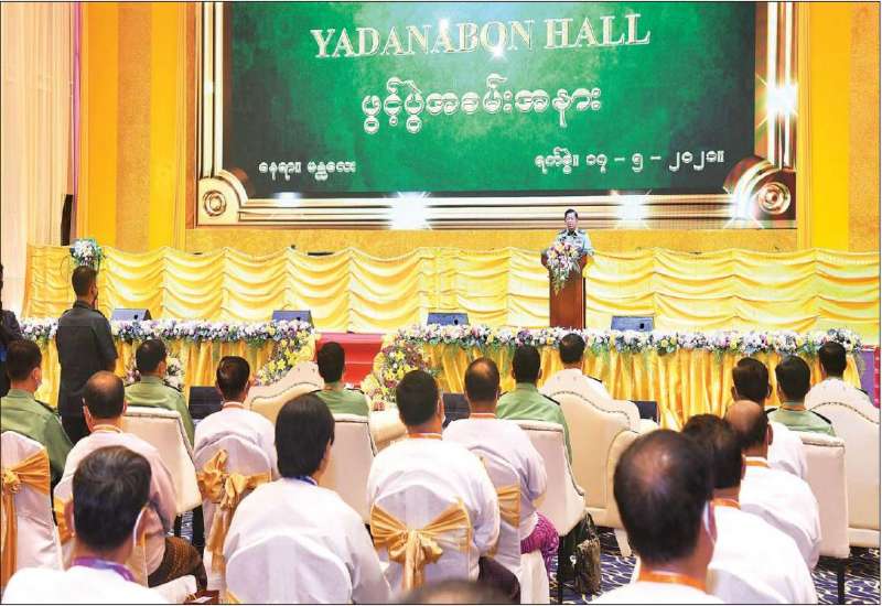 နိုင်ငံတော်စီမံအုပ်ချုပ်ရေးကောင်စီ ဥက္ကဋ္ဌ၊ တပ်မတော်ကာကွယ်ရေးဦးစီး ချုပ် ဗိုလ်ချုပ် မှူးကြီးမင်းအောင်လှိုင်သည် ယနေ့မွန်းလွဲပိုင်းတွင် မန္တလေးတိုင်း ဒေသကြီး စီမံအုပ်ချုပ်ရေး ကောင်စီအဖွဲ့ဝင်များနှင့် ဌာနဆိုင်ရာဝန်ထမ်းများအား တိုင်းဒေသကြီး စီမံအုပ်ချုပ်ရေး ကောင်စီရုံး၌ သွားရောက်တွေ့ဆုံ အမှာစကား ပြောကြားသည်။