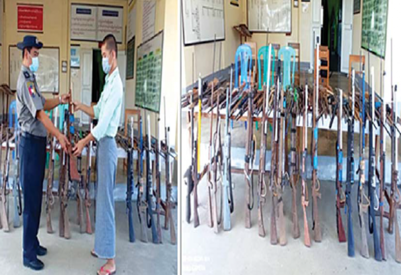 တိုင်းဒေသကြီး၊ ပြည်နယ်များရှိ မြို့နယ် အချို့၌ လက်နက်ကိုင်ဆောင်လိုခြင်း မရှိဘဲ အေးချမ်းစွာ နေထိုင်လိုသည့် ပြည်သူလူထုမှ၎င်းတို့၏ သဘောဆန္ဒ အလျောက် ၎င်းတို့ထံတွင်ရှိသော လက်လုပ်သေနတ်နှင့် တူမီးသေနတ် များကို အုပ်ချုပ်ရေးတာဝန်ရှိသူများမှ တစ်ဆင့် လုံခြုံရေးတပ်ဖွဲ့ဝင်များထံ လာရောက်အပ်နှံခဲ့ကြောင်း သိရသည်။