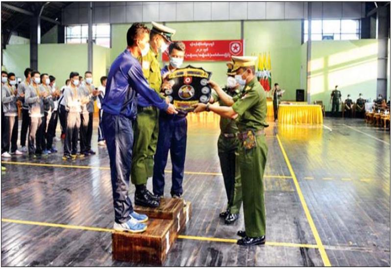 ရန်ကုန်တိုင်းစစ်ဌာနချုပ်၏ ၂၀၂၁ ခုနှစ် တိုင်းမှူးဒိုင်း (အမျိုးသား၊ အမျိုးသမီး) ဘော်လီဘောပြိုင်ပွဲ ဗိုလ်လုပွဲနှင့် ဆုပေးပွဲကို ယနေ့ မွန်းလွဲပိုင်းတွင် ရန်ကုန်တိုင်း ဒေသကြီး မင်္ဂလာဒုံမြို့နယ်ရှိ တပ်မတော် ဆေးတက္ကသိုလ် အားကစားခန်းမ၌ ပြုလုပ်ရာ တိုင်းမှူး ဗိုလ်ချုပ် ညွန့်ဝင်းဆွေနှင့် အရာရှိ၊ စစ်သည်၊ မိသားစုများ၊ ပြိုင်ပွဲဝင်အသင်းများနှင့် ဒိုင်အဖွဲ့ ဝင်များ တက်ရောက်ကြသည်။