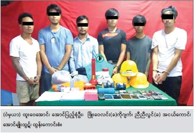 စစ်ကိုင်းတိုင်းဒေသကြီး၊ ချောင်းဦးမြို့နယ်၌ နိုင်ငံတော်ဆန့်ကျင်ရေး အဖျက်အမှောင့် လုပ်ရပ်များ လုပ်ဆောင်ရန်ပြင်ဆင်နေသည့် အကြမ်းဖက်အဖွဲ့ကို သွားရောက်ရှင်းလင်းစဉ် အမျိုးသား ၂ ဦးကို တူမီးသေနတ်၊ လက်လုပ်သေနတ်၊ ဂက်စ်သေနတ်၊ ပြောင်းချောသေနတ်များ၊ လက်လုပ်မိုင်း၊ လက်လုပ်ဗုံးအများအပြားနှင့်အတူ ဖမ်းဆီးရမိခဲ့ကြောင်း သိရသည်။