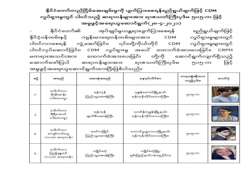 နိုင်ငံတော်အတွင်း ဆူပူအုံကြွမှုများ ဖြစ်ပေါ်စေရေးအတွက် နောက်ကွယ်မှ သွေးထိုးလှုံ့ဆော် နည်းမျိုးစုံဖြင့် ဆောင်ရွက်လျက်ရှိသကဲ့သို့ အဖျက်အမှောင့် ဆောင်ရွက်လိုသူအချို့မှလည်း နိုင်ငံတော် ဆန့်ကျင်ရေးစာသားများအား အများပြည်သူသုံးလမ်းမကြီးများ၊ နိုင်ငံတော်ပိုင်နှင့် အများပြည်သူပိုင် အဆောက်အဦများပေါ်တွင် ရေးသားခြင်း၊ ဆန့်ကျင်ရေးစာသားပါ ဗီနိုင်းစများ၊ ပိုစတာများ၊ စာရွက်များ အား ချိတ်ဆွဲခြင်း၊ လမ်းများပေါ်တွင် ဖြန့်ကြဲခြင်းတို့ဖြင့် နိုင်ငံတော်အတွင်း မတည်မငြိမ်ဖြစ်စေရန် ရည်ရွယ်ချက်ရှိရှိဖြင့် ဆောင်ရွက်လျက်ရှိသည်ကို တွေ့ရှိရပါသည်။ လုံခြုံရေးတပ်ဖွဲ့ဝင်များအနေဖြင့် နိုင်ငံတော်တည်ငြိမ်ရေးနှင့် ရပ်ရွာအေးချမ်းသာယာရေးအတွက် ဆူပူဆန္ဒပြမှုများနှင့် အကြမ်းဖက်မှု ဖြစ်စဉ်များအား ဥပဒေနှင့်အညီ ဖြိုခွဲထိန်းသိမ်းလျက်ရှိသကဲ့သို့ ဆန့်ကျင်စာ၊ လှုံ့ဆော်စာ၊ ရေးသား လှုံ့ဆော်ဖြန့်ဝေသူများကိုလည်း နိုင်ငံတော်တည်ငြိမ်ရေးအတွက် ရှေ့ရှု့ကာ ဥပဒေနှင့်အညီ ဖမ်းဆီး ထိန်းသိမ်းဆောင်ရွက်လျက်ရှိပါသည်။