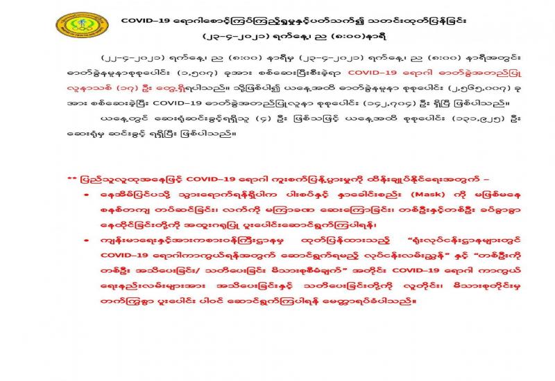 COVID-19 ရောဂါစောင့်ကြပ်ကြည့်ရှုမှုနှင့်ပတ်သက်၍ သတင်းထုတ်ပြန်ခြင်း
