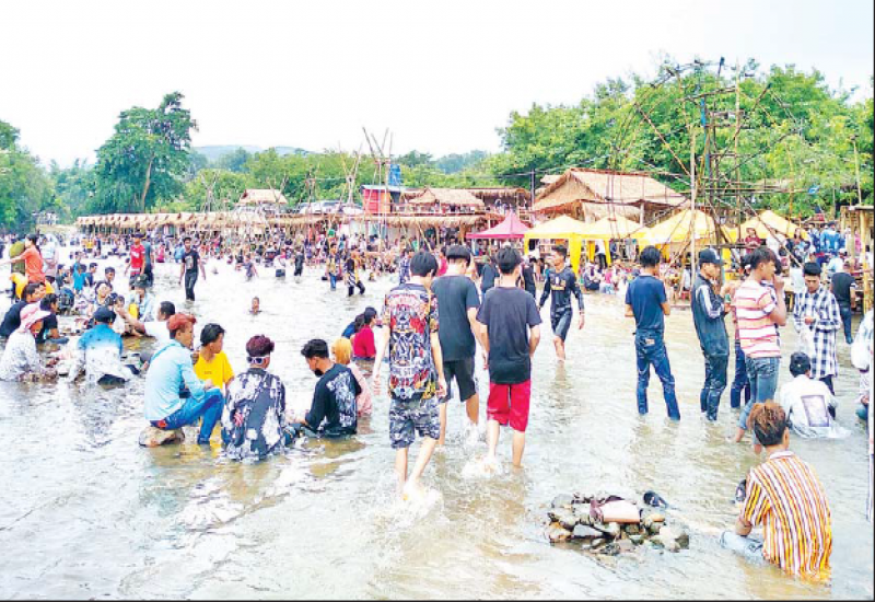 ရှမ်းပြည်နယ် (အရှေ့ပိုင်း) တာချီလိတ်မြို့နယ်ရှိ ရေချောင်း များတွင် ယနေ့ (ဧပြီ ၁၆ ရက်) သင်္ကြန်အတက်နေ့၌ စိတ်အေး ချမ်းသာစွာ အပန်းဖြေအနားယူ သူများ၊ ရေကစားသူများဖြင့် စည်ကား လျက်ရှိသည်ကို တွေ့ရ သည်။