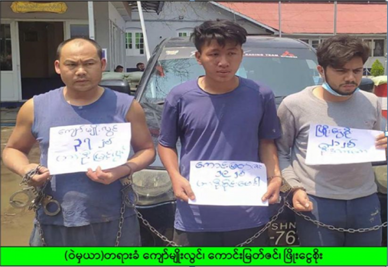 လုံခြုံရေးတပ်ဖွဲ့ဝင်များပါဝင် သော ပူးပေါင်းအဖွဲ့သည် ယနေ့နံနက် ၁၀ နာရီခွဲတွင် တောင်ကြီးမြို့၊ မြို့ပေါ်ရပ်ကွက်များအတွင်း၌ လှည့်ကင်းဆောင်ရွက်စဉ် ကန်ရှေ့ရပ်ကွက် အရှေ့မြို့ပတ်လမ်း “ရွှေကမ္ဘာ”ကားဂိတ်ရှေ့၌ 4F/7618 Mistubishi ယာဉ်သည် အမြင့် ၉ ပေခွဲခန့်ရှိ ကော်ပိုက်အဖြူရောင်ထိပ်တွင် လက်သုံးချောင်းပုံပါ အနီရောင်အလံကို ကားပေါ်တွင် ထောင်၍ မော်တော်ယာဉ် ၆ စီး၊ ဆိုင်ကယ် ၅ စီးတို့ဖြင့် လှည့်လည် ဆန္ဒပြနေသည်ကို တွေ့ရှိသဖြင့် ဖမ်းဆီးခဲ့ရာ 4F/7618 Mistubishi ယာဉ်နှင့်အတူ ယာဉ်မောင်း ကန်ရှေ့ရပ်ကွက်နေ ဖြိုးဝေစိုး(ခ)Sachin Phatia(၂၁)နှစ် (ဘ)ဦးSK ပါ ၃ ဦးကို ဖမ်းဆီးရမိခဲ့သည်။