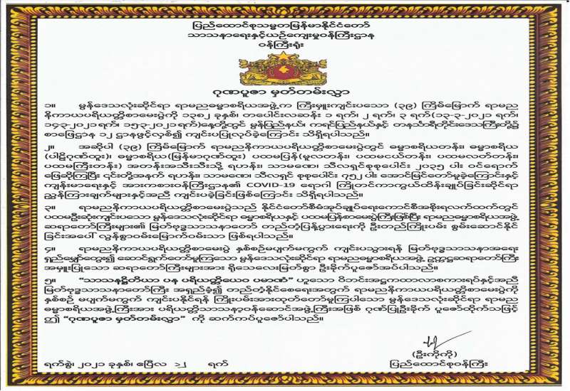 မွန်ဒေသလုံးဆိုင်ရာ ရာမညဓမ္မာစရိယအဖွဲ့က ကြီးမှူးကျင်းပသော (၃၉)ကြိမ်မြောက် ရာမည နိကာယပရိယတ္တိစာမေးပွဲကြီးကို မတ် ၁၃ ရက်မှ ၁၅ ရက်အထိ မွန်ပြည်နယ်၊ ကရင်ပြည်နယ် နှင့်တနင်္သာရီတိုင်းဒေသကြီးတို့ရှိ စာဖြေဌာန ၁၂ ဌာနတို့တွင် ကျန်းမာရေးနှင့်အားကစားဝန်ကြီး ဌာနက ထုတ်ပြန်ထားသော COVID-19 ရောဂါ ကာကွယ်တားဆီးရေးဆိုင်ရာ ညွှန်ကြားချက် များနှင့်အညီ အောင်မြင်စွာ ကျင်းပနိုင်ခဲ့သည်။