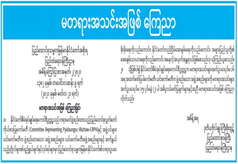 (၂၀၂၁ ခုနှစ်၊ မတ်လ (၂၅)ရက်နေ့၊ နံနက်(၁၀:၃၀)နာရီအချိန် ထုတ်ပြန်ချက်)