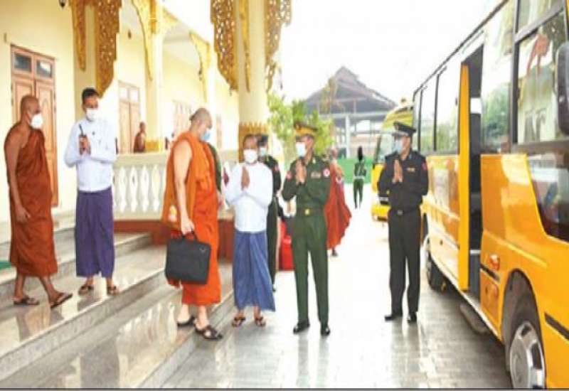 ၂၀၂၁ ခုနှစ်၊ သာသနာတော်ဆိုင်ရာ ဘွဲ့တံဆိပ်တော်ဆက်ကပ်ခံယူမည့် ဆရာတော် များအား ပြည်ထောင်စုသမ္မတမြန်မာနိုင်ငံတော်၊ နိုင်ငံတော်စီမံအုပ်ချုပ်ရေးကောင်စီ ဥက္ကဋ္ဌ တပ်မတော်ကာကွယ်ရေးဦးစီးချုပ် ဗိုလ်ချုပ်မှူးကြီး မင်းအောင်လှိုင်နှင့်ဇနီး ဒေါ်ကြူကြူလှ တို့က ယနေ့နံနက်ပိုင်းတွင် နေပြည်တော်၊ ဥပ္ပါတသန္တိစေတီတော်မြတ်ကြီး ပရိဝုဏ်အတွင်း ရှိ သာသနာ့မဟာဗိမာန်တော်ကြီး၌ နေ့ဆွမ်းဆက်ကပ်လှူဒါန်းသည်။