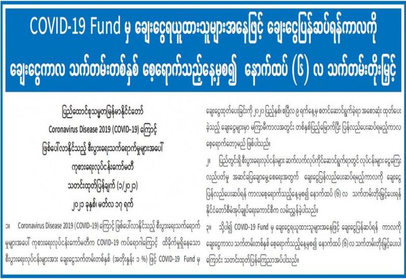 COVID-19 ရောဂါဖြစ်ပေါ်မှုအခြေအနေများကြောင့် ဗုဒ္ဓဘာသာ ဘုရားစေတီများ အပါအဝင် သက်ဆိုင်ရာ ဘာသာများအလိုက် ဘာသာရေးကျောင်းများအား ဖူးမြော်ခွင့်၊ ဝတ်ပြုခွင့်များ ယာယီရပ်ဆိုင်း ထားရှိရာမှ COVID-19 စည်းမျဉ်း၊ စည်းကမ်းများနှင့်အညီ စိတ်အေး ချမ်းသာစွာ ဖူးမြော်၊ ဝတ်ပြု၊ ကြည်ညို တရားဘာဝနာပွားများနိုင်ရေး အတွက် ဖေဖော်ဝါရီ ၈ ရက်မှ စတင်၍ ပြန်လည်ဖွင့်လှစ်ပေးခဲ့သည်။