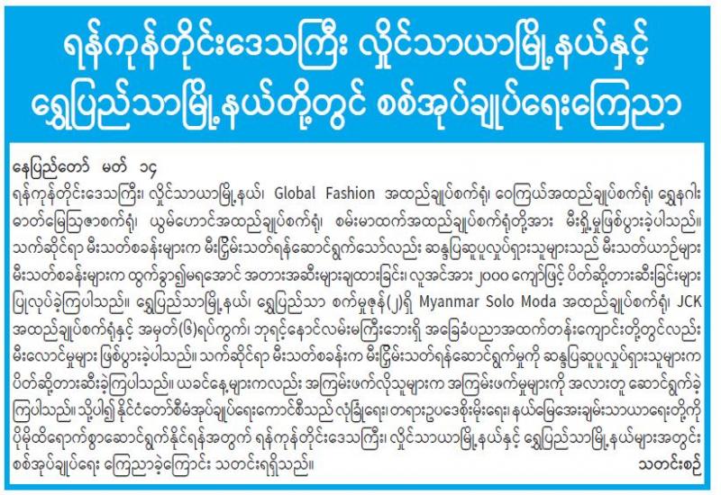 စစ်ကိုင်းတိုင်းဒေသကြီးအတွင်းရှိ ကုန်တင်ယာဉ်များ၊ အဝေးပြေးခရီးသည် တင်ယာဉ်များ အနေဖြင့် ကိုဗစ်-၁၉ ရောဂါ ဖြစ်ပွားနေစဉ် ကာလအတွင်း သွားလာမှု အဆင်ပြေချောမွေ့ရေး အတွက် လိုက်နာရမည့်အချက်များ ရှင်းလင်းဆွေးနွေးခြင်း အခမ်းအနားကို မတ် ၁၂ ရက် မွန်းလွဲ ၂ နာရီက စစ်ကိုင်းတိုင်းသကြီး စီမံအုပ်ချုပ်ရေးကောင်စီရုံး အစည်းအဝေးခန်းမ၌ ကျင်းပသည်။