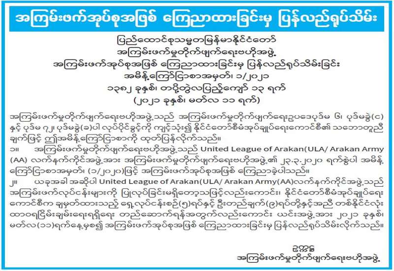 (၂၀၂၁ ခုနှစ်၊ မတ်လ (၁၂)ရက်နေ့၊ နံနက်(၁၀:၃၀)နာရီအချိန် ထုတ်ပြန်ချက်)
