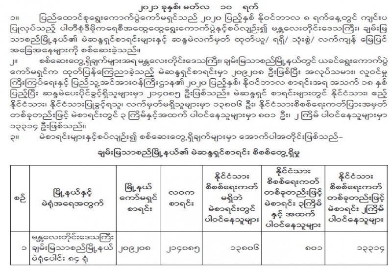 ပြည်ထောင်စုရွေးကောက်ပွဲကော်မရှင်၏ သတင်းထုတ်ပြန်ချက်