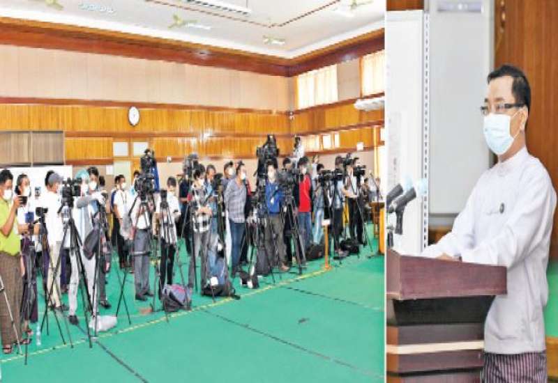 နိုင်ငံတော်စီမံအုပ်ချုပ်ရေးကောင်စီ၊ သတင်းထုတ်ပြန်ရေးအဖွဲ့ခေါင်းဆောင် ဗိုလ်မှူးချုပ် ဇော်မင်းထွန်းက လက်ရှိနိုင်ငံရေးဖြစ်ပေါ်ပြောင်းလဲမှု အခြေအနေများ နှင့် စပ်လျဉ်း၍ သတင်းစာရှင်းလင်းပွဲကို ယနေ့ မွန်းလွဲပိုင်းတွင် ပြန်ကြားရေး ဝန်ကြီးဌာန၌ကျင်းပပြုလုပ်ပြီးသတင်းမီဒီယာများ၏ သိရှိလိုသည့်မေးမြန်းမှု များ ကိုပြန်လည်ဖြေကြားသည်။