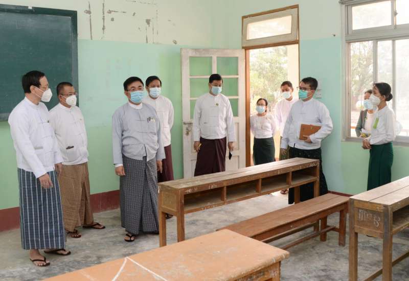 ပညာရေးဝန်ကြီးဌာန ပြည်ထောင်စုဝန်ကြီး ဒေါက်တာညွန့်ဖေသည် ဒုတိယ ဝန်ကြီးများဖြစ်ကြသော ဒေါက်တာ ဇော်မြင့်နှင့် ဦးဇော်ဝင်း၊ အခြေခံပညာဦးစီးဌာန ဒုတိယညွှန်ကြားရေးမှူးချုပ်၊ နေပြည်တော်ကောင်စီနယ်မြေ ပညာရေး မှူးတို့နှင့် ယနေ့နံနက်ပိုင်းတွင် နေပြည်တော် ဒက္ခိဏသီရိမြို့နယ် အမှတ်(၁၈) အခြေခံပညာ အထက် တန်းကျောင်း၊ အမှတ်(၉) အခြေခံပညာမူလတန်းလွန်ကျောင်း (ရဲဒိကျေးရွာ) နှင့် အမှတ်(၁၉) အခြေခံ ပညာ အထက်တန်းကျောင်း သို့သွားရောက် ၍ အခြေခံပညာ ကျောင်းများ ပြန်လည်ဖွင့်လှစ်နိုင်ရေး ပြင်ဆင် ထားရှိ မှုများကို လှည့်လည်ကြည့်ရှု သည်။