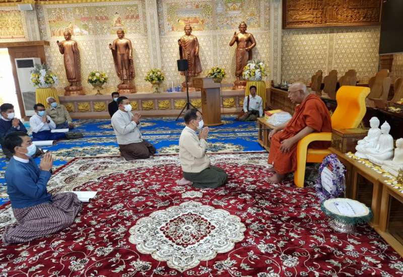 ရခိုင်ပြည်နယ်၌ သာသနာတော်ဆိုင်ရာ ဘွဲ့တံဆိပ်တော် ဆက်ကပ်လှူဒါန်းခြင်း နှင့် ထပ်ဆင့်ဂုဏ်ပြုပူဇော်ပွဲ အခမ်းအနား အောင်မြင်စွာကျင်းပနိုင်ရေး ဦးစီးကော်မတီ နှင့် လုပ်ငန်းကော်မတီများလုပ်ငန်းညှိနှိုင်း အစည်းအဝေး(၁/၂၀၂၁)ကို ယနေ့ မွန်းလွဲ ၂ နာရီက ပြည်နယ်စီမံအုပ်ချုပ်ရေးကောင်စီ ရုံး အစည်းအဝေးခန်းမ၌ ကျင်းပသည်။