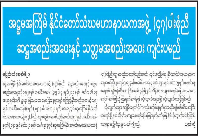 မွန်ပြည်နယ် စီမံအုပ်ချုပ်ရေးကောင်စီ ဥက္ကဋ္ဌနှင့် အဖွဲ့ဝင်ခန့်အပ်