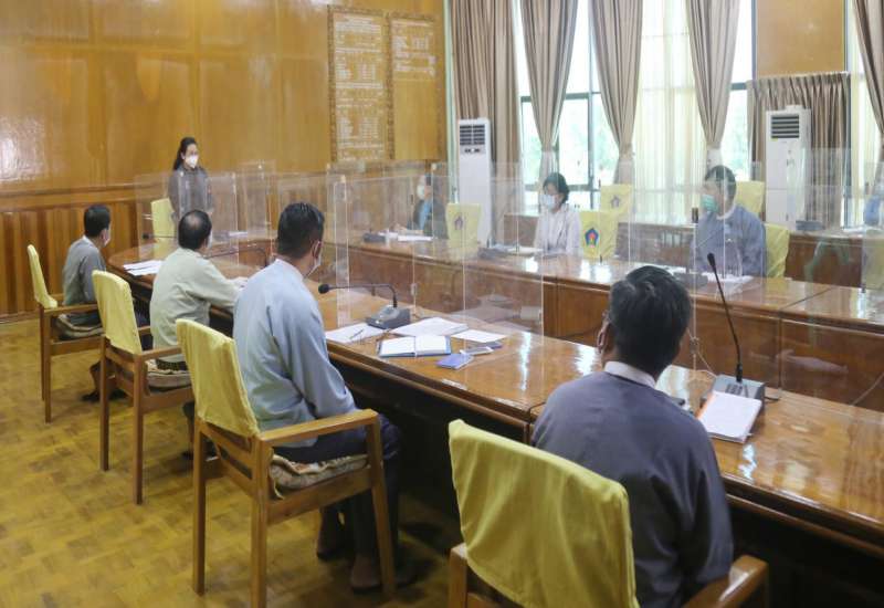 ကျန်းမာရေးနှင့်အားကစားဝန်ကြီးဌာန၏ လတ်တလော ဆောင်ရွက်နေသည့် ကိုဗစ်-၁၉ ကာကွယ်ထိန်းချုပ်ရေး လုပ်ငန်းများနှင့် ကာကွယ်ဆေးထိုးလုပ်ငန်းများ၊ ရှေ့လုပ်ငန်း စဉ်များနှင့်ပတ်သက်သည့် ညှိနှိုင်းအစည်းအဝေးကို ယနေ့ နံနက်ပိုင်းတွင် အဆိုပါဝန်ကြီးဌာန၌ ကျင်းပသည်။
