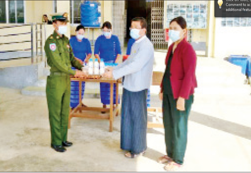 ကိုဗစ်-၁၉ ရောဂါ ကာကွယ်၊ ထိန်းချုပ်၊ ကုသမှုလုပ်ငန်းများဆောင်ရွက်နေစဉ်ကာလအတွင်း သွားလာမှု ကန့်သတ်ချက် များကြောင့် ဒေသခံပြည်သူများ စားရေးအဆင်ပြေစေရန် အတွက် နယ်မြေခံ တပ်မတော် သားများက ဆန်၊ ဆီနှင့် စားသောက်ဖွယ်ရာများကို အိမ်အရောက် လိုက်လံပေးဝေ လှူဒါန်းလျက်ရှိသည်။