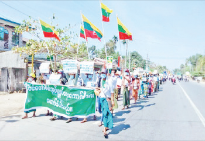 ၂၀၀၈ ခုနှစ် ဖွဲ့စည်းပုံအခြေခံဥပဒေနှင့်အညီ ဆောင်ရွက် လျက်ရှိသည့် မြန်မာ့တပ်မတော်အား ထောက်ခံ ပွဲကို ယနေ့တွင် တနင်္သာရီတိုင်းဒေသကြီး ကျွန်းစုမြို့၌ အင်အား ( ၈၀၀၊ မန္တလေး တိုင်းဒေသကြီး မိတ္ထီလာမြို့၌ အင်အား ( ၁၀၀၀၀ ခန့်ဖြင့်လည်းကောင်း၊ မလှိုင်မြို့၌ အင်အား ၃၀၀၀ဖြင့်လည်းကောင်း၊ ပျော်ဘွယ်မြို့၌ အင်အား ၂၀၀၀ ခန့်ဖြင့် လည်းကောင်း၊ ပဲခူး တိုင်းဒေသကြီး ထန်းတပင်မြို့၌ အင်အား ၃၀၀၀ ခန့်ဖြင့် လည်းကောင်း၊ ကျောက်ကြီးမြို့၌ အင်အား ၂၀၀ ခန့်ဖြင့် လည်းကောင်း၊ သာယာဝတီမြို့၌အင်အား ၃၀၀၀ ခန့်ဖြင့် လည်းကောင်း၊ မိုးညိုမြို့၌ အင်အား ၅၀၀ ခန့်ဖြင့် လည်းကောင်း၊ ဖြူးမြို့၌ အင်အား ၃၀၀၀ |ခန့်ဖြင့် လည်းကောင်း၊ မုန်းမြို့၌ အင်အား ၄၀၀ ခန့်ဖြင့်လည်းကောင်း အသီးသီး ဆန္ဒဖော်ထုတ်ခဲ့ ကြသည်။ ထိုသို့ ဆန္ဒဖော်ထုတ်ရာတွင် ဖွဲ့စည်းပုံအခြေခံဥပဒေ (၂၀၀၈)နှင့်အညီ ဆောင်ရွက် လျက်ရှိသည့် မြန်မာ့တပ်မတော်အား ထောက်ခံ ပါသည်၊ ဥပဒေနှင့်အညီ ဖွဲ့စည်းထားသည့် နိုင်ငံတော်စီမံအုပ်ချုပ်ရေးကောင်စီ အစိုးရသစ်အား ကြိုဆို ထောက်ခံပါသည်၊ ဥပဒေနှင့်အညီ ဖွဲ့စည်းထားသည့် UEC အသစ်အား ကြိုဆိုပါသည်။ ပြည်ပအားကိုး ပုဆိန်ရိုး အမျိုးသားရေး သစ္စာဖောက်များအား အလိုမရှိ၊ မြန်မာပြည်ကြီး ငြိမ်းချမ်းပါစေ၊ မြန်မာပြည်ကြီး အေးချမ်း ပါစေ၊ ဥပဒေနှင့်မညီသော ရွေးကောက်ပွဲရလဒ် အလိုမရှိ၊ အမျိုးဘာသာသာသနာကို စောင့်ရှောက်ပေးသော မြန်မာ့ တပ်မတော်အား ထောက်ခံပါသည်။ တပ်မတော်နှင့် ပြည်သူသွေးခွဲသူ ဒို့ရန်သူ၊ စစ်မှန်ပြီး စည်းကမ်းပြည့်ဝသော ဒီမိုကရေစီစနစ်ကို အကောင်အထည် ဖော်ဆောင် ပေးမည့် တပ်မတော်အား ထောက်ခံပါသည် စာသားပါ ဆိုင်းဘုတ် များကို ကိုင်ဆောင်ကြွေးကြော် ခဲ့ကြသည်။