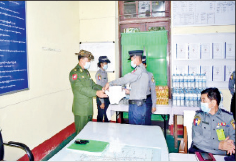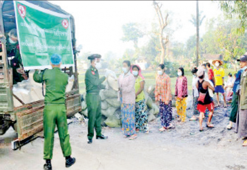 နိုင်ငံတော်နှင့် တပ်မတော်အတွက် အသက်ပေးလှူခဲ့ရသည့်အရာရှိ၊ စစ်သည်များ၏ မိသားစု ဝင်များ၊ စစ်မှုထမ်းဟောင်း အဖွဲ့ဝင်များနှင့် မိသားစုဝင်များ၊ ရဲမှုထမ်းဟောင်းအဖွဲ့ဝင်များ၊ ပြည်သူ့စစ်(ဌာနေ) တပ်ဖွဲ့ဝင်များနှင့်မီးသတ်တပ်ဖွဲ့ဝင် များအတွက် ကိုဗစ်-၁၉ ရောဂါ ကာကွယ်၊ ထိန်းချုပ်၊ ကုသရေး လုပ်ငန်းများ ဆောင်ရွက်နေသည့်ကာလအတွင်း အသွားအလာ ကန့်သတ်ချက်များကြောင့် စားရေး အခက်အခဲ မရှိစေရန် ဆန်၊ ဆီ၊ ဆား၊ ပဲ အမယ်လေးမျိုးနှင့် ကိုဗစ်- ၁၉ ရောဂါကာကွယ်ရေး အထောက်အကူပြုပစ္စည်း များကို သက်ဆိုင်ရာ တိုင်းစစ်ဌာန ချုပ်များ၊ စစ်မှုထမ်းဟောင်းရုံး အိမ်ရာများ၊ တပ်နယ်ခန်းမများနှင့် ရဲတပ်ဖွဲ့မှူးရုံး တို့၌ ပေးအပ်လျက်ရှိသည်။