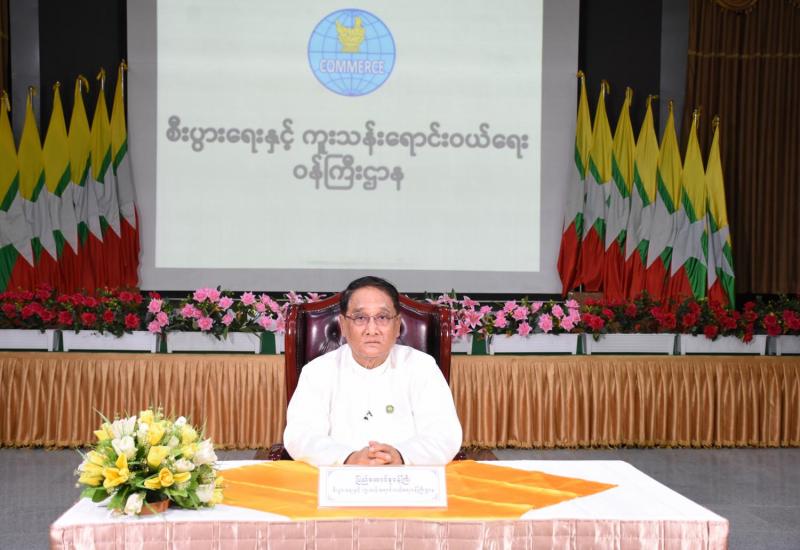World Pulses Day 2021 အခမ်းအနားနှင့် မြန်မာနိုင်ငံဒီဂျစ်တယ် စီးပွားရေးဆိုင်ရာ လုပ်ငန်းရှင်များအသင်း ပထမအကြိမ်မြောက် နှစ်ပတ်လည် အသင်းသား စုံညီအစည်းအဝေးတို့ကို ယနေ့ကျင်းပရာ စီးပွားရေးနှင့် ကူးသန်းရောင်းဝယ်ရေးဝန်ကြီးဌာန ပြည်ထောင်စုဝန်ကြီး ဒေါက်တာသန်းမြင့် Video Message ပေးပို့၍ အမှာစကားပြောကြားသည်။