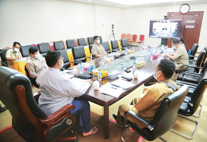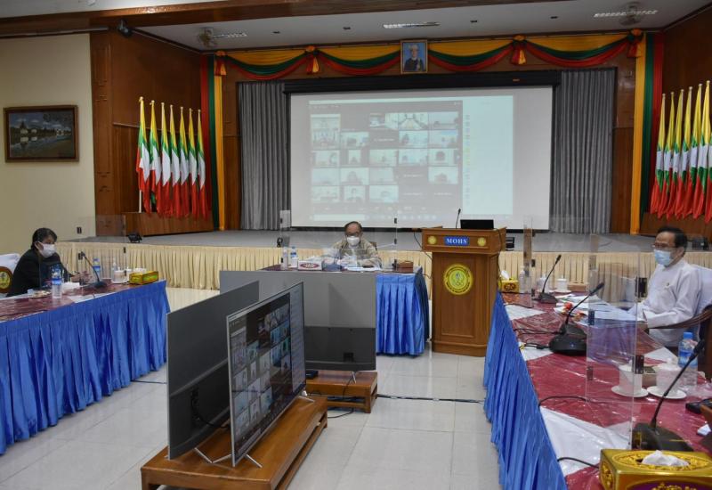 ကိုဗစ်-၁၉ ကာကွယ်ဆေး ရရှိလာနိုင်မှုအခြေအနေ အမျိုးအမျိုးအပေါ်မူတည်၍ စနစ်တကျခွဲဝေ ထိုးနှံနိုင်ရေး သဏ္ဍာန်တူစားပွဲတင်လေ့ကျင့် ကြိုတင်ပြင်ဆင်ခြင်း အခမ်းအနားကို ယမန်နေ့ ညနေပိုင်းက နေပြည်တော်ရှိ ကျန်းမာရေးနှင့်အားကစားဝန်ကြီးဌာန၌ ဗီဒီယိုကွန်ဖရင့်စနစ်ဖြင့် ကျင်းပသည်။