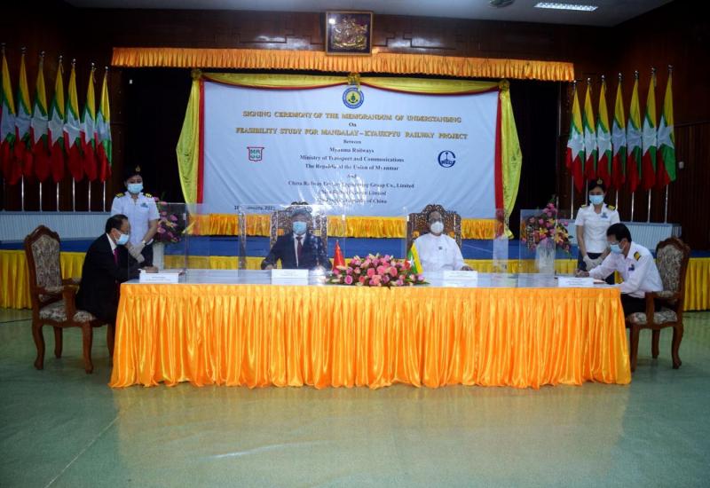 ပို့ဆောင်ရေးနှင့်ဆက်သွယ်ရေးဝန်ကြီးဌာန မြန်မာ့မီးရထားနှင့် China Railway Eryuan Engineering Group Co.,Ltd (CREEC) တို့အကြား မန္တလေး-ကျောက်ဖြူရထားလမ်းသစ် ဖောက်လုပ်ရေး စီမံကိန်း ဖြစ်မြောက်နိုင်ခြေလေ့လာမှု (Feasibility Study) ဆောင်ရွက်ရန်အတွက် နားလည်မှုစာချွန်လွှာ (MoU) လက်မှတ်ရေးထိုးခြင်း အခမ်းအနားကို ဇန်နဝါရီ ၁၀ ရက် နံနက် ၁၀ နာရီတွင် နေပြည်တော်ရှိ ပို့ဆောင်ရေးနှင့် ဆက်သွယ်ရေးဝန်ကြီးဌာန အစည်းအဝေးခန်းမ၌ ကိုဗစ်-၁၉ ကာကွယ်ထိန်းချုပ်ရေး စည်းမျဉ်းစည်းကမ်းများနှင့်အညီ ကျင်းပသည်။