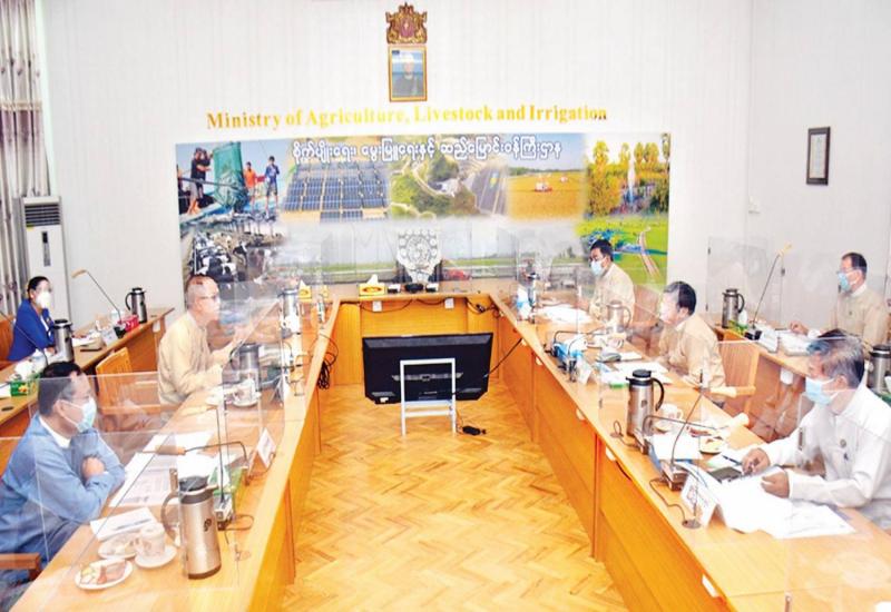ရာသီဥတုပြောင်းလဲမှုဖြစ်စဉ်ကြောင့် ကြုံတွေ့လာရသည့် ရေရှားပါးလာမှုကို ဖြေရှင်းနိုင်ရန် ရေရရှိရေး ဆောင်ရွက်နေသော လုပ်ငန်းများနှင့် ဆောင်ရွက်သင့်သည့် လုပ်ငန်းစဉ်များဆိုင်ရာ ညှိနှိုင်းအစည်းအဝေးကို ယနေ့မွန်းလွဲပိုင်းက စိုက်ပျိုးရေး၊ မွေးမြူရေးနှင့် ဆည်မြောင်း ဝန်ကြီးဌာန ပြည်ထောင်စုဝန်ကြီးရုံး အစည်းအဝေးခန်းမ၌ ကိုဗစ်-၁၉ တားဆီးကာကွယ်ရေး ဆိုင်ရာ ညွှန်ကြားချက်များနှင့်အညီ ကျင်းပသည်။
