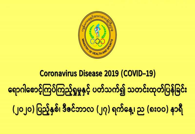 (၂၆-၁၂-၂၀၂၀) ရက်နေ့၊ ည (၈:၀၀) နာရီမှ (၂၇-၁၂-၂၀၂၀) ရက်နေ့၊ ည (၈:၀၀) နာရီ အတွင်း ဓာတ်ခွဲနမူနာ စုစုပေါင်း (၁၆,၆၀၇) ခုအား စစ်ဆေးပြီးစီးခဲ့ရာ COVID-19 ရောဂါ ဓာတ်ခွဲ အတည်ပြု လူနာသစ် (၆၀၆) ဦး တွေ့ရှိရပါသည်။